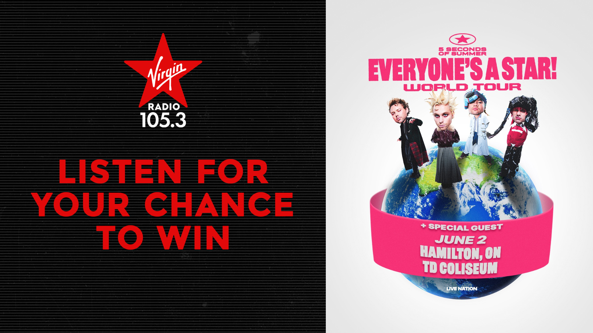 No purchase necessary. Contest starts at 6:00AM Eastern Time (ET) on November 3, 2025 and closes on November 7, 2025 at 9:59AM ET. Open to legal residents of Ontario who are eighteen years of age or older. Some restrictions apply. Correct answer to a mathematical skill-testing question required. Approximate retail value of the five (5) Prizes is $200 CAD. Odds of winning the Prize will depend upon the total number of entries following the applicable Announcement. Winners of a previous Bell Media Inc. contest within the thirty (30) days preceding the winner selection date for this Contest (including persons designated by such winners to participate in the prize and persons domiciled with a winner) are not eligible to enter or to be selected for a prize and may be disqualified.