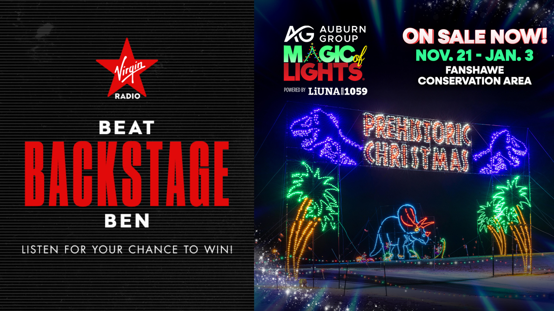 Press your luck every weekday and go head to head with our resident trivia buff, Backstage Ben! If you beat him, we'll hook you up with a carload admission pass to Magic of Lights on November 21st - January 3rd at Fanshawe Conservation Area!